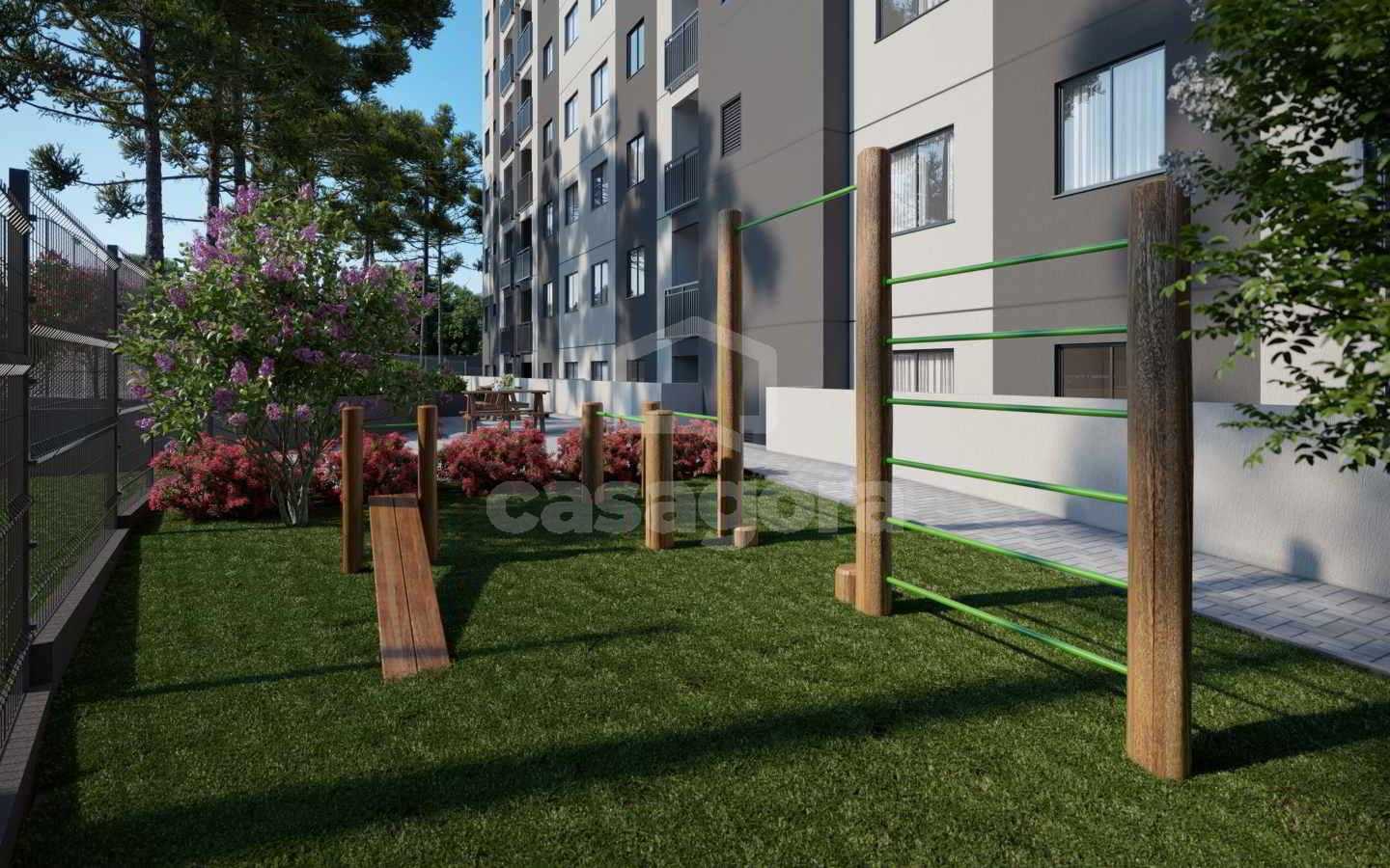 Diferenciais do condomínio: Apartamentos de 2 quartos com 43m² Elevador Portaria segura Fachada moderna Sacada com churrasqueira Piscina Academia ao ar livre Quadra poliesportiva Playground Salão de festas Quiosque Fireplace (espaço com lareira externa) Espaço zen Espaço yoga Horta e pomar Redário Espaço piquenique Bicicletário Pet place Piso nas áreas molhadas Rebaixo em gesso no banheiro Infraestrutura para aquecimento a gás no chuveiro e banheiro