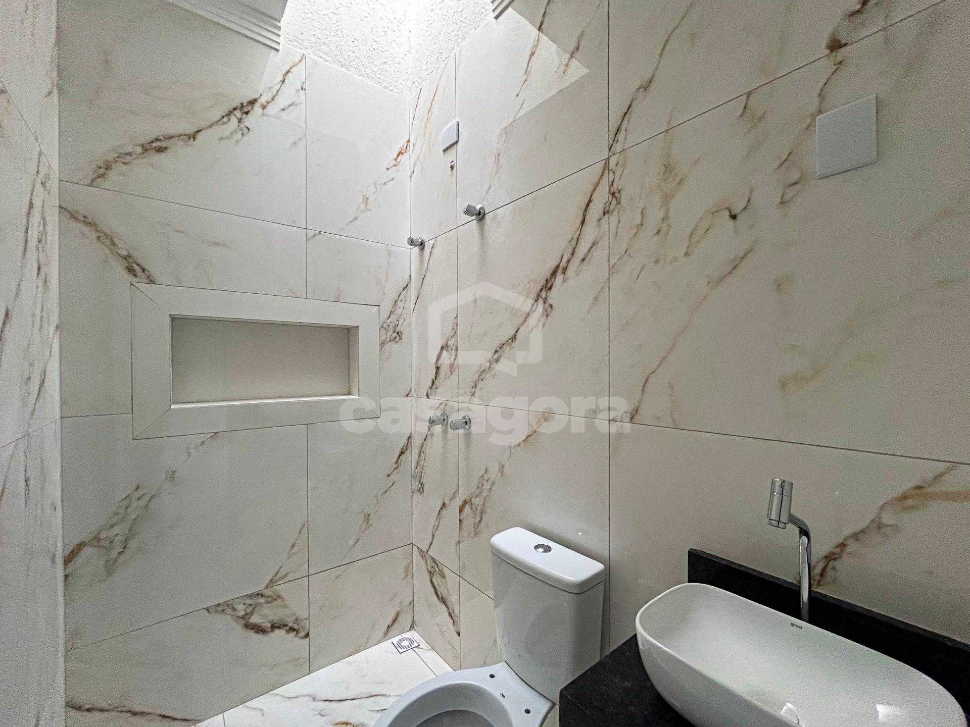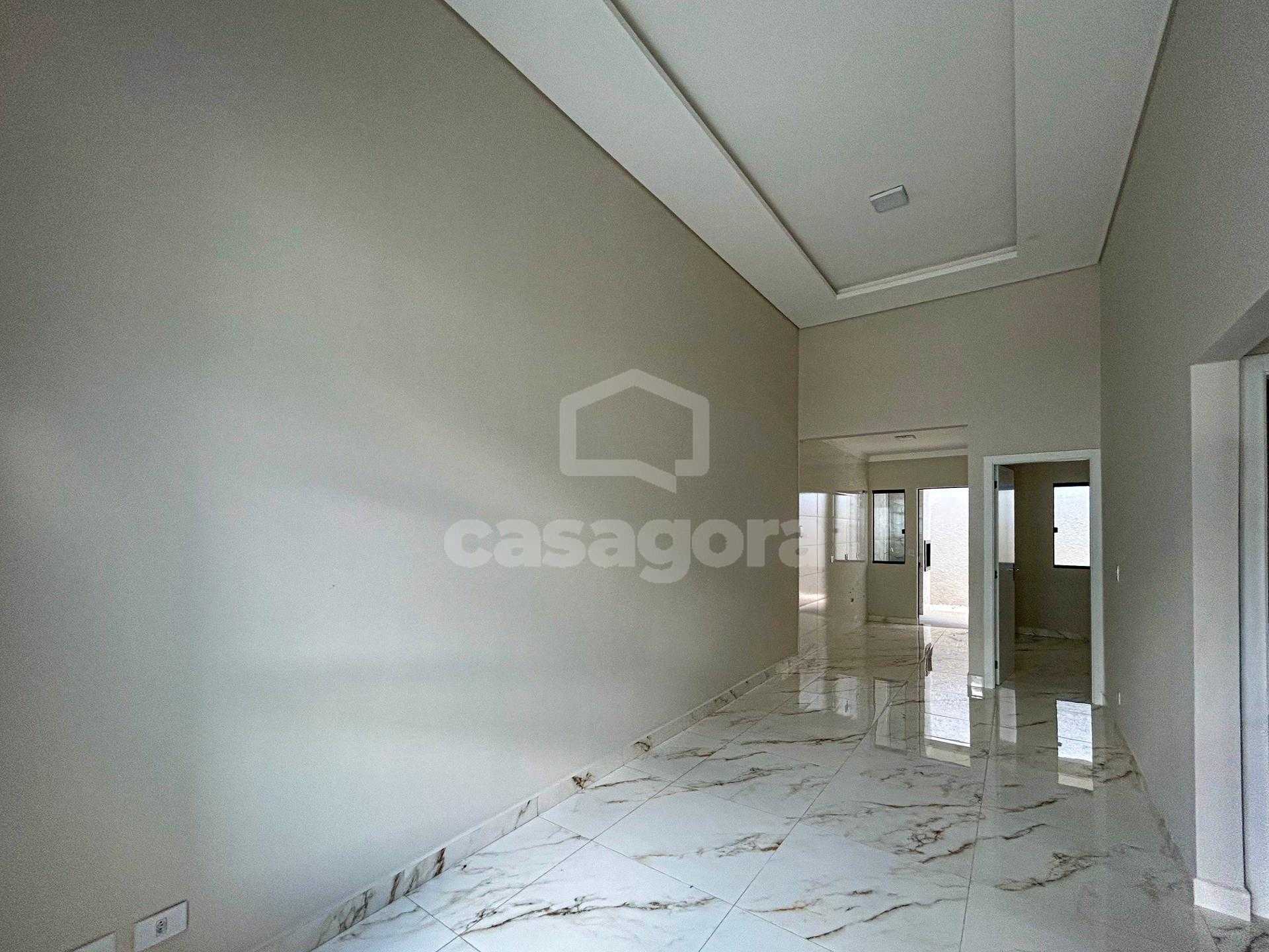 A casa conta com: 3 quartos, sendo 1 suíte Sala com pé direito alto, já com luminária instalada, proporcionando mais amplitude e iluminação natural Cozinha funcional Banheiro social com pia e nicho em granito Porcelanato polido em toda a casa Sanca de gesso em todos os ambientes Portas com acabamento branco Janelas amplas, garantindo ótima ventilação e iluminação Garagem para até 2 veículos Área de serviço coberta Área gourmet, ideal para momentos de lazer Jardim decorado, valorizando a área externa Pintura projetada Instalação elétrica 110/220V Sistema de aquecimento a gás
